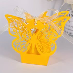 • CAJAS PARA DECORACIONES O RECUERDOS DE OCASION MARIPOSA DORADA